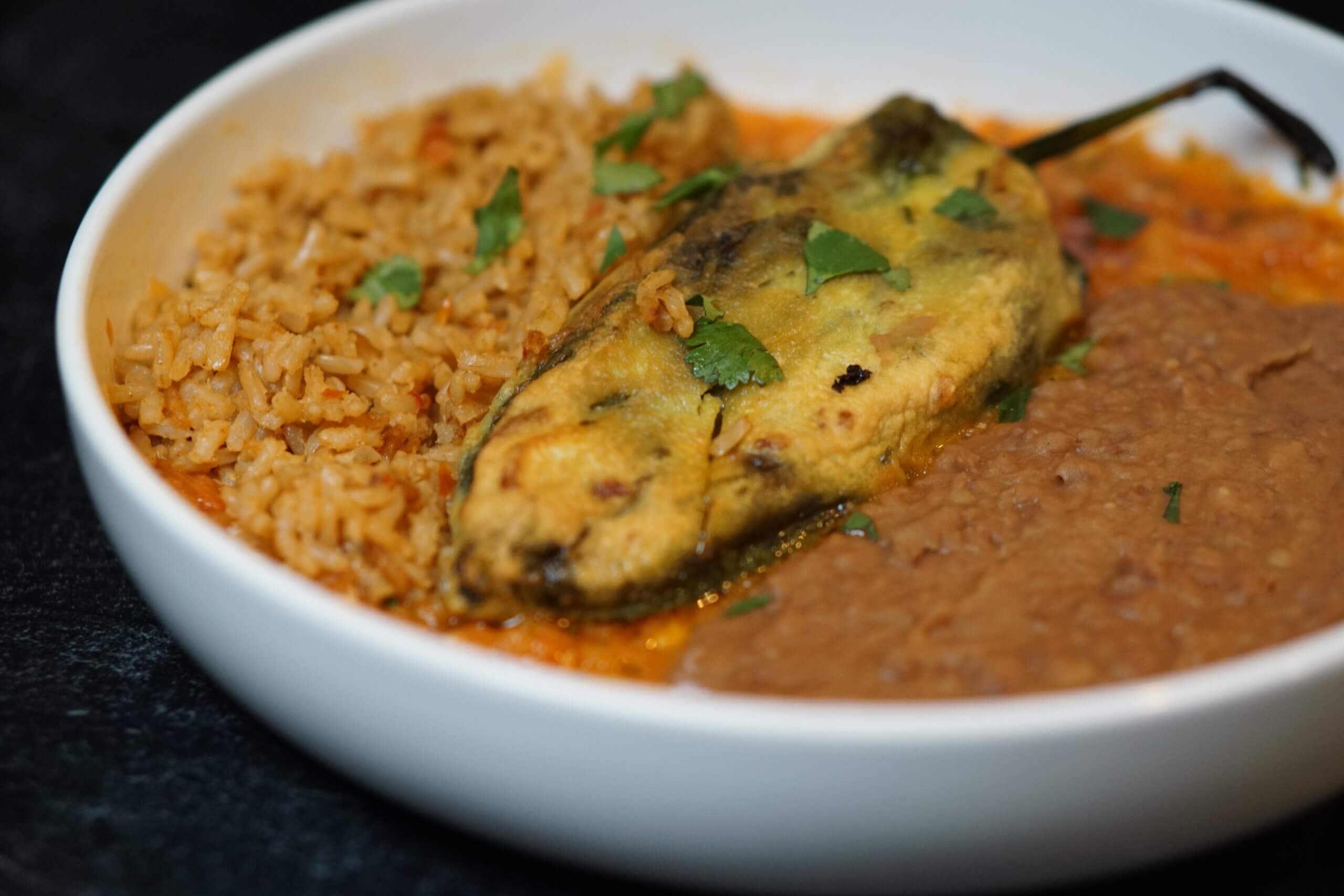 For the Salsa Ranchera and Chiles: Adjust rack to 4 inches below broiler and preheat broiler to high. Place poblanos, tomatoes, onion, serranos, and garlic on a foil-lined rimmed baking sheet. Broil until chiles are blackened on top, about 5 minutes. Flip chiles to expose another un-blackened surface and continue broiling for another 5 minutes. Turn chiles one more time, flip tomatoes, and continue broiling until chiles are blackened all over, a few minutes longer.