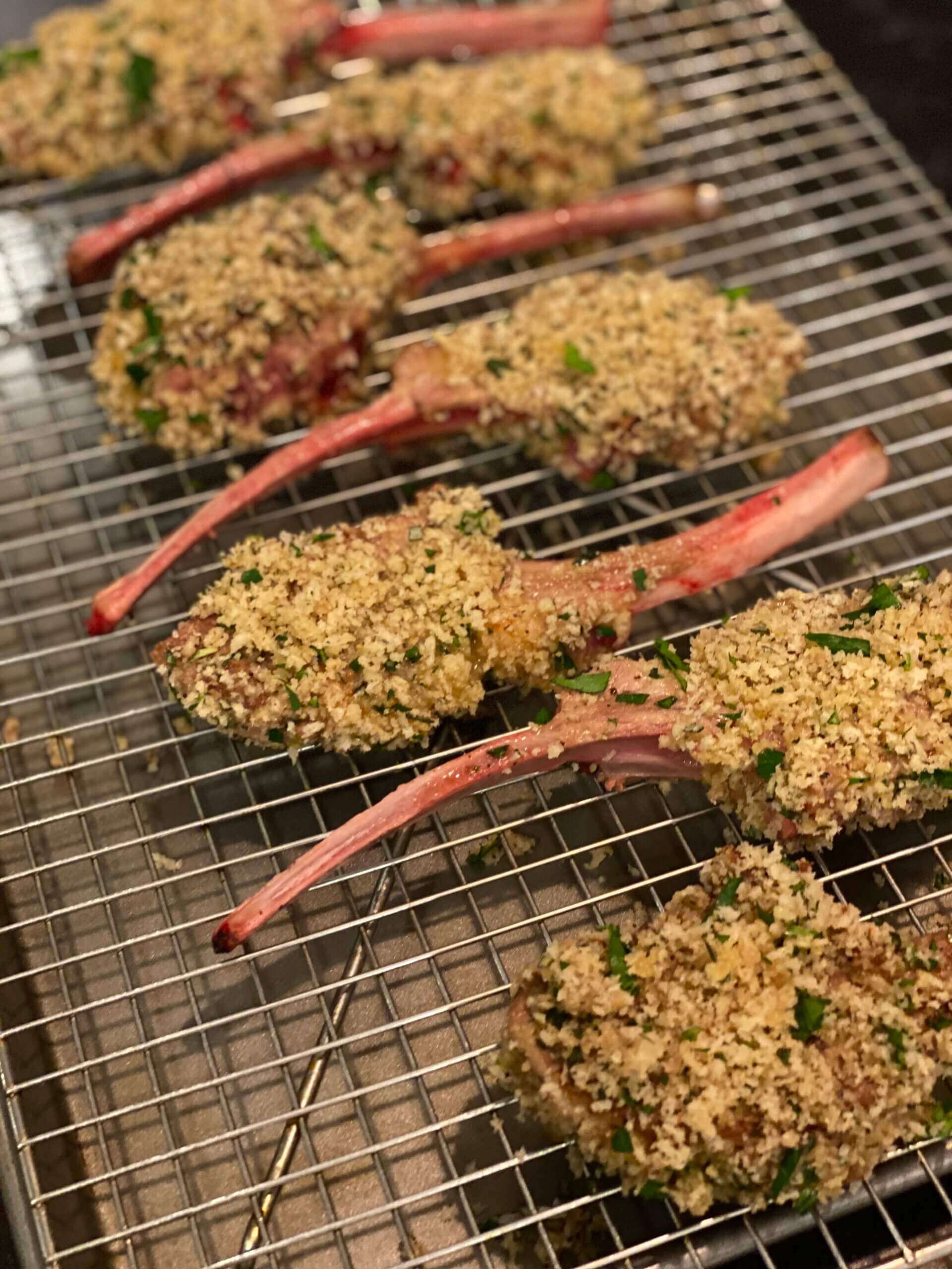 2 frenched 8-bone racks of lamb (2 to 2 1/4 pounds each), with the bone end cleaned, or “frenched”