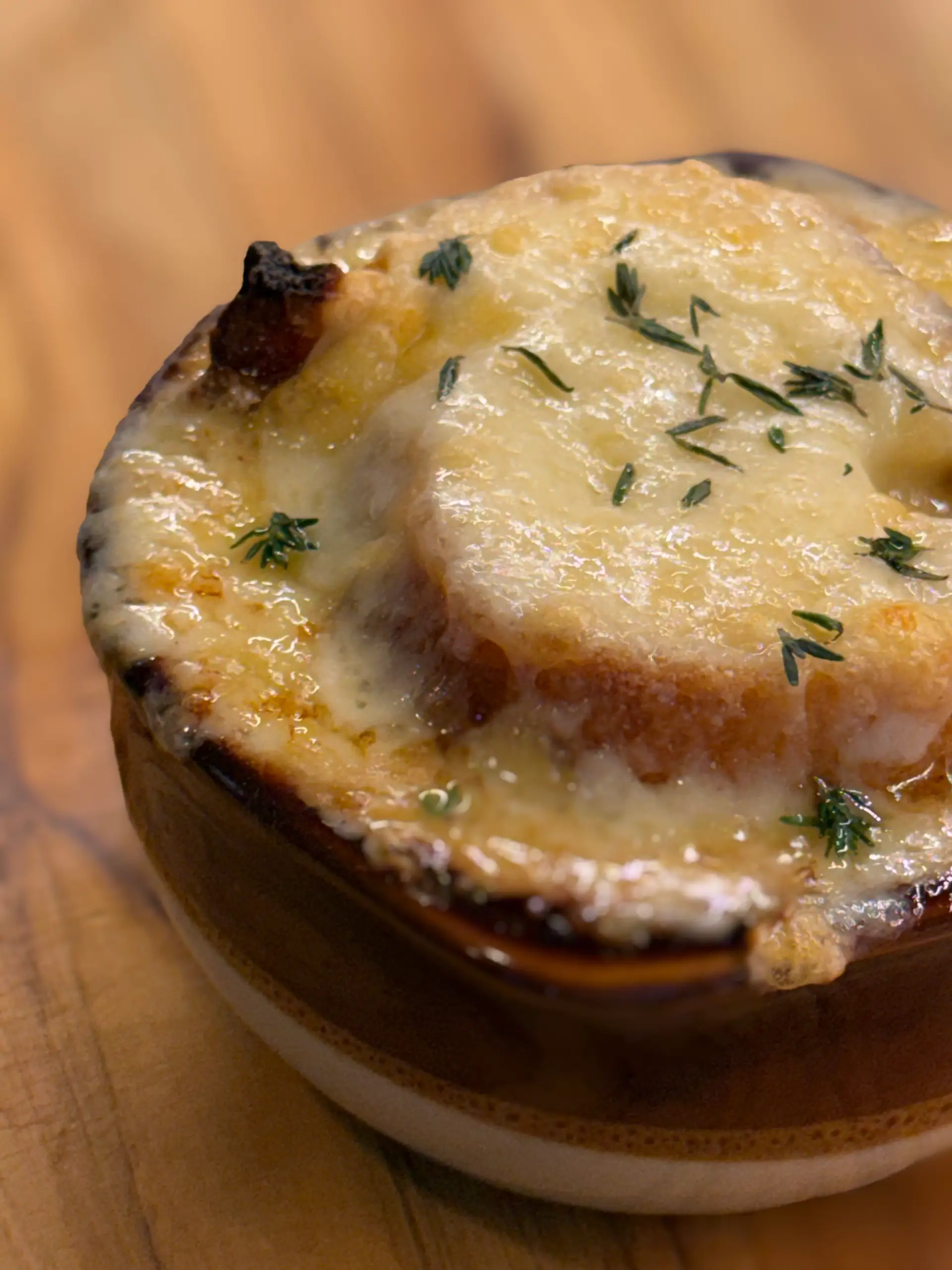 Place each crock under a preheated, rip-roaring broiler until the cheese melts, bubbles, browns, and even scorches slightly in isolated spots. The finished cheese should be a panorama of molten brown hues ranging from golden brown to dark brown to a few black spots where the cheese blistered and burned. Serve immediately—and carefully. You don’t know pain until you’ve spilled one of these things.