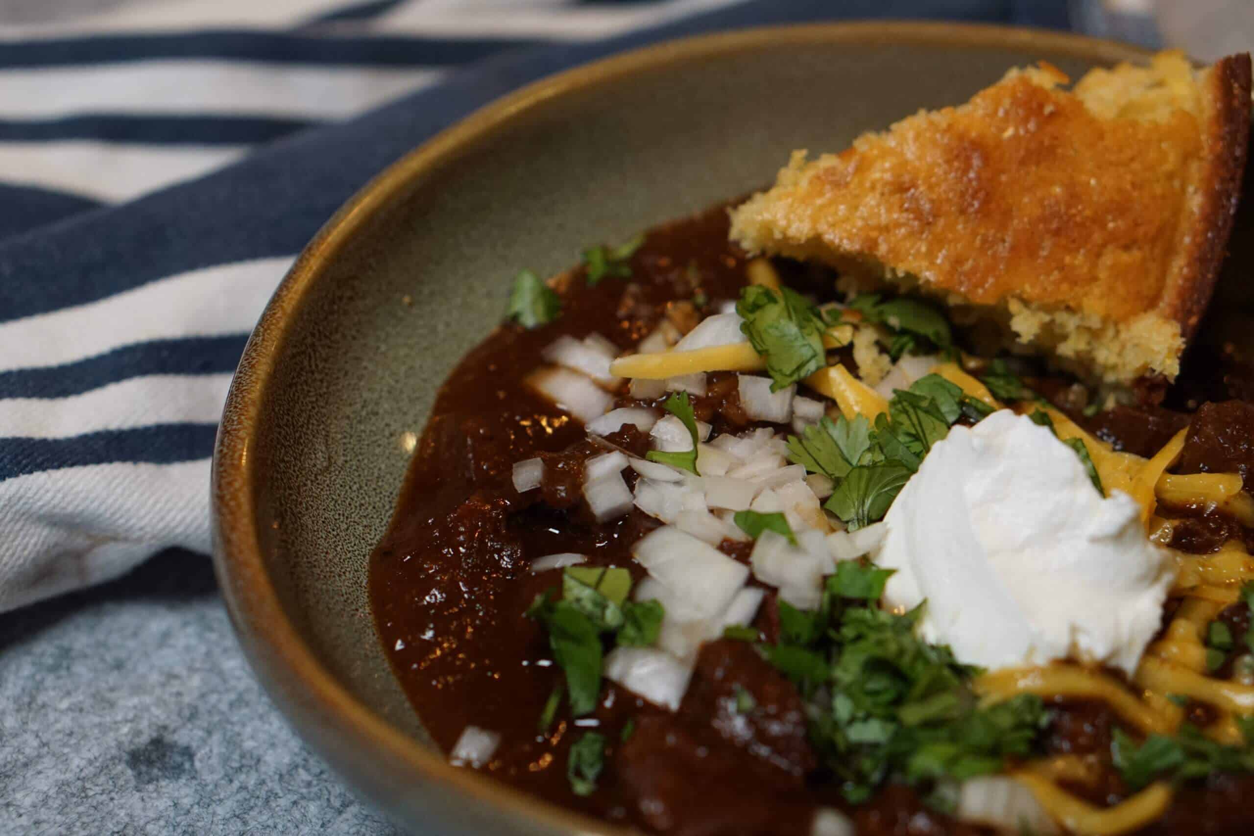 Remove from heat: skim and discard fat from surface. Break apart some of the pieces of meat by pressing with the back of the spoon, if desired for less chunky chili seamless, season with additional salt to taste, divided evenly.
